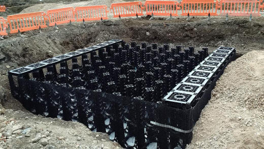 empty RootSpace used for stormwater retention or detention. These