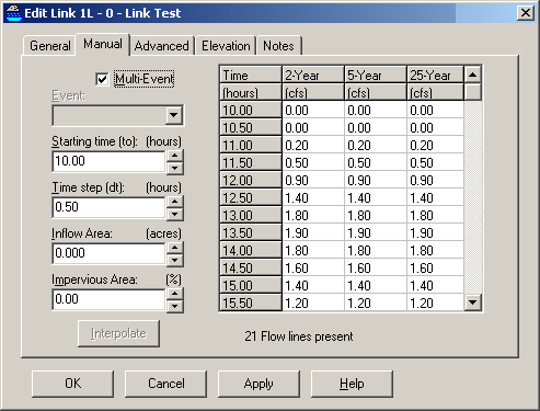 different tailwater table for each event. Click the Help button for