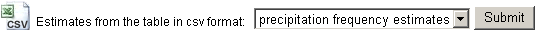 NOAA Precipitation Frequency Data Server (PFDS)NOAA Atlas 14 provides rainfall data for most of the United States. Follow these instructions to download rainfall data from this site: 1) Open the NOAA PFDS web page at http://hdsc.nws.noaa.gov/hdsc/pfds/ 2) Select a state from the drop-down list, or click the state on the map. Note: NOAA data is only available for the states shown in blue. 3) Set "Data Type" to "Precipitation Depth". (To ensure full precision, the intensity format is not supported and will not be recognized by HydroCAD.) 4) Units can be English/US or Metric (HydroCAD will convert as required). 5) Make sure the "Time Series Type" is set to "Partial Duration" 6) Select the exact site location according to the instructions at the right side of the map -or- click the desired location on map. 7) Scroll to the bottom of the page (past the tabular report) and make sure "precipitation frequency estimates" is selected: